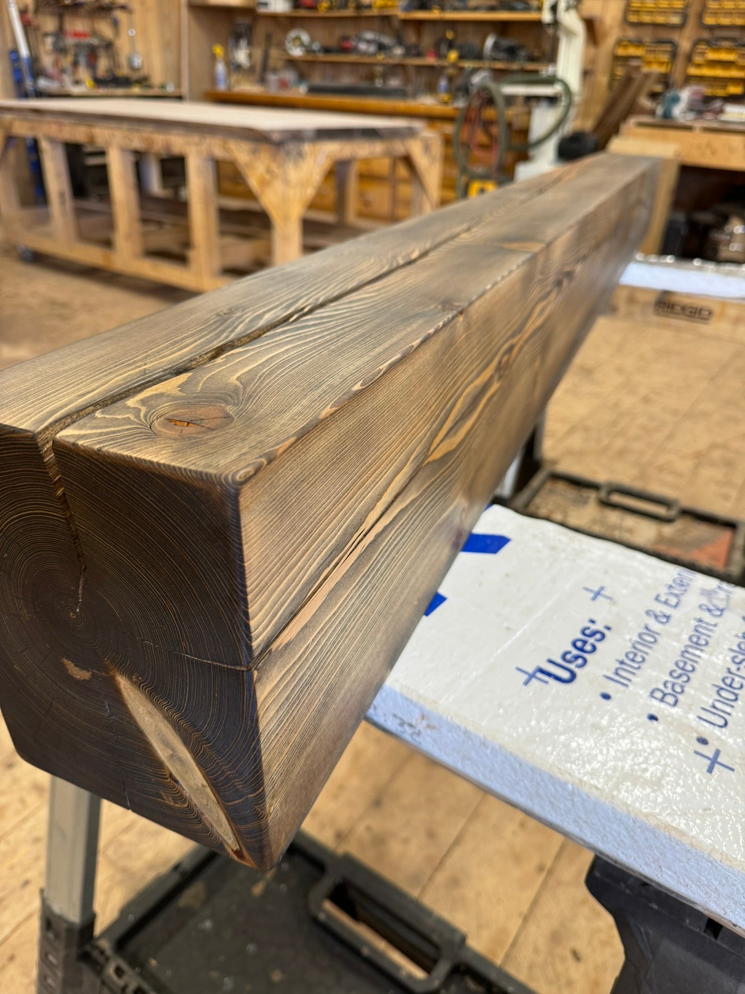 Timeless. Clean square edge solid wood beams make for beautiful fireplace mantles and will be sure to complement almost any living space. They blend easily with a variety of home decor designs and we can stain them to match your space perfectly.