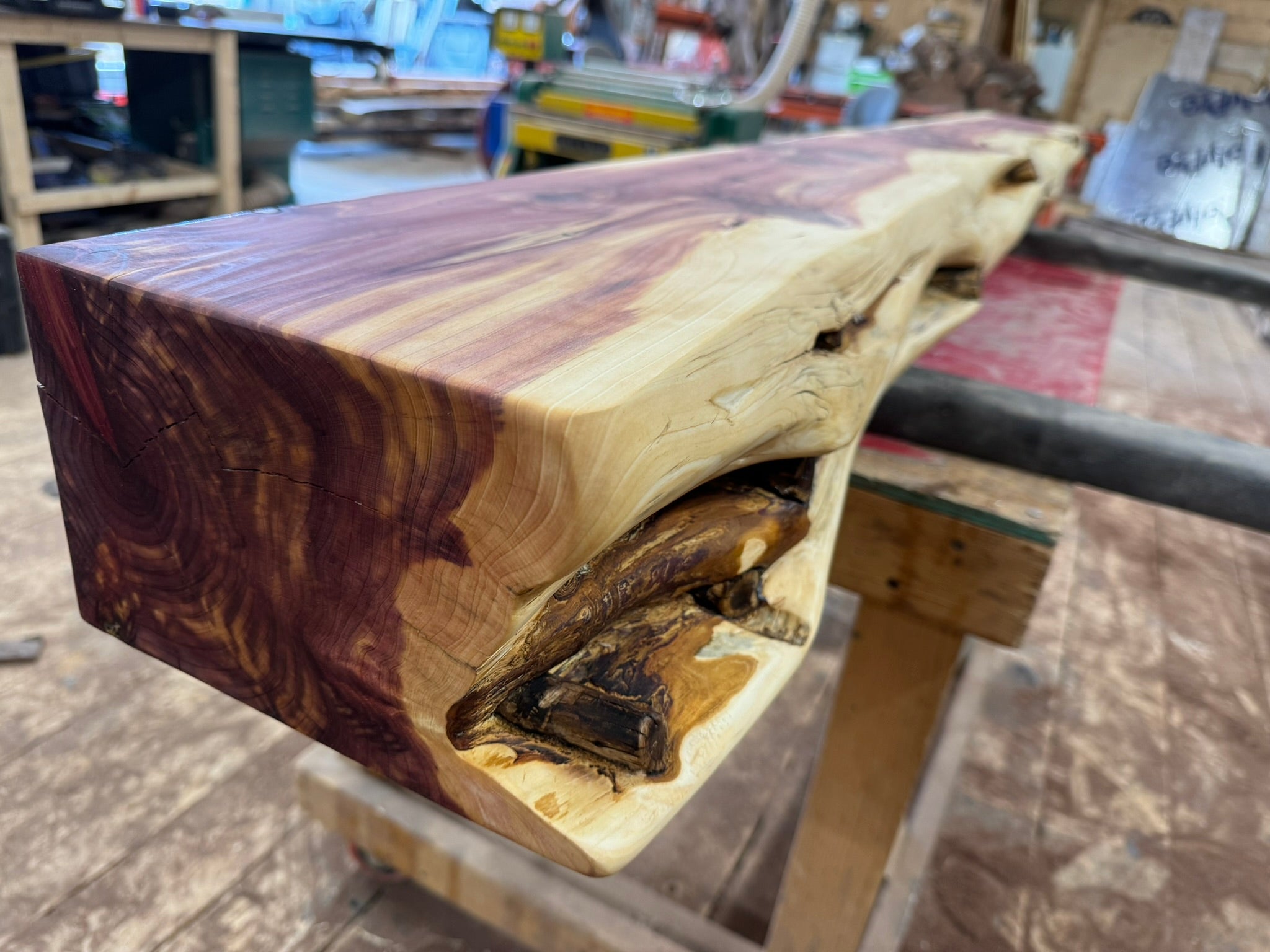 LIve Edge Eastern Red Cedar Fireplace Mantle