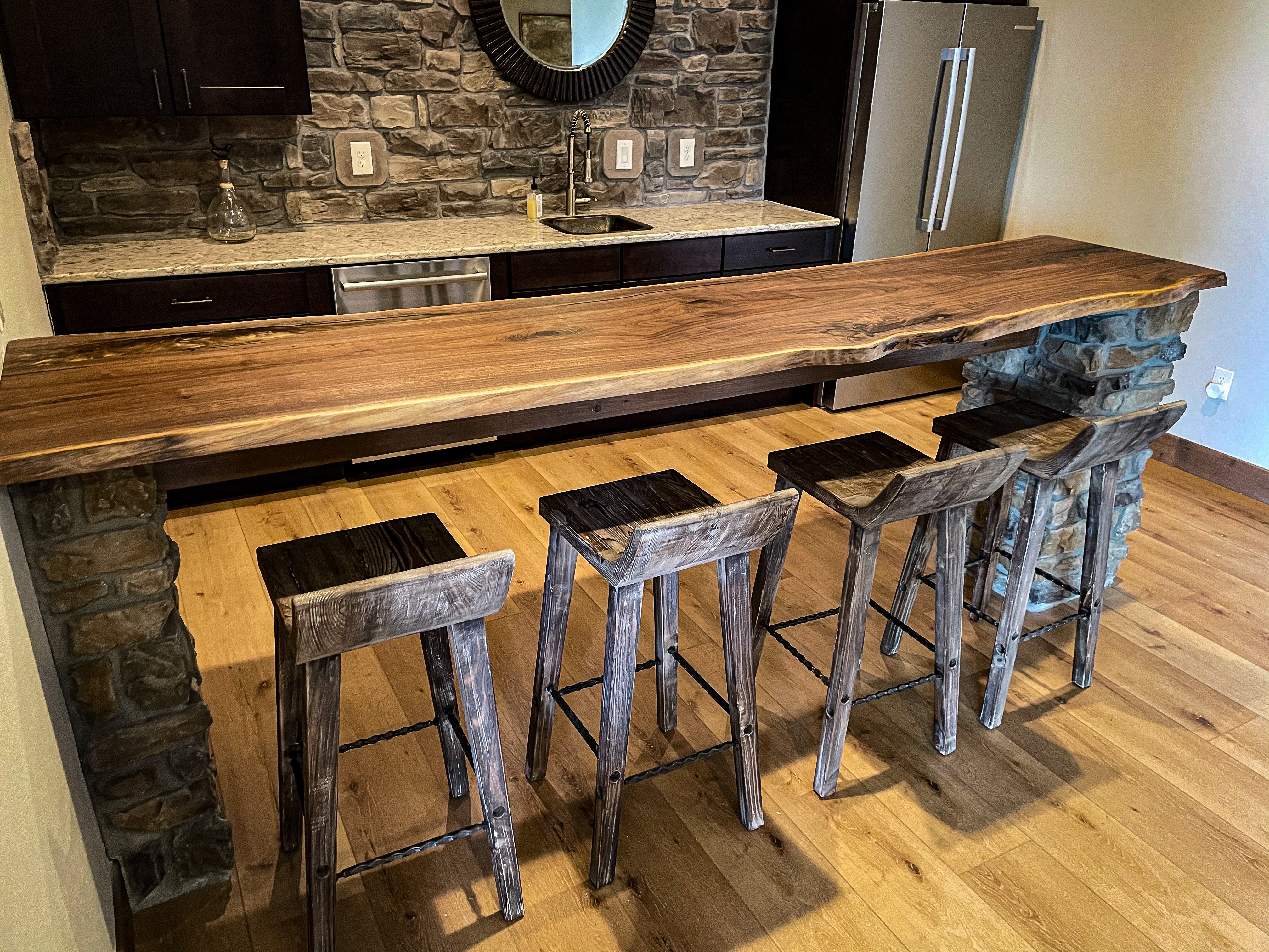 I have one slab left from a collection of gorgeous spalted Pecan live edge slabs. The finished picture are from another table we have built from the same tree. This slab is not for the beginner but when worked correctly, will be a gem you will cherish for a lifetime. Contact us for a commissioned project out of this slab or take on the challenge yourself with the purchase of the slab.